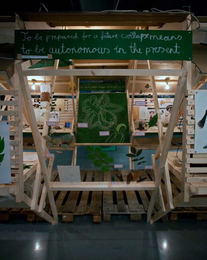 Therefore, in the exhibition “Untimely Stories,” many artworks were conceived through performing, staging, and materializing fictional encounters and narratives, exploring the least possible tracks of events. For instance, the work of Tamás Kaszás and Anikó Lorant (“Famine Food,” part of Untimely Stories) is grounded in their expectation of the coming ecological collapse, which, in their view, will disrupt current social contracts, modes of mass production, consumption, and conditions of living in areas influenced by Western civilization. Their installations, based on the research of autonomous practices and the poetics of survival, tend to materialize something that has not (yet?) happened, urging us to experience it through the senses as if it did happen – to imagine what it means (and feels like) for fiction to come true. In her work Supposing I love you. And you also love me, Wendelien Van Oldenborgh created a model for a democratic public sphere, something that, according to her, does not exist (any more? Not yet?) in one particular European country, but only in a spectral form. Staging a conversation between people who have never met before – the Islamic scholar Tariq Ramadan and young migrants living in the Netherlands – and who share their difficulties in socializing there, Van Oldenborgh’s piece points to the symptoms of a crisis of democracy in this society. In particular, she illuminates the mechanisms of producing and silencing uncomfortable otherness. In her work, different positions and forms of utterance that are unalike and incompatible can be articulated and heard, and can resonate together. It is, in fact, a fictional intimate and sensual public sphere, where all kinds of voices enter into multilayered and multidirectional relationships with each other, just as it happens in love, when the friction of differences proves creative, and opens up to the other. This staging sets the very conditions for this experience – which reaches far beyond rhetoric – materializing through a meticulous montage of sound, images, texts and in the exhibition space.