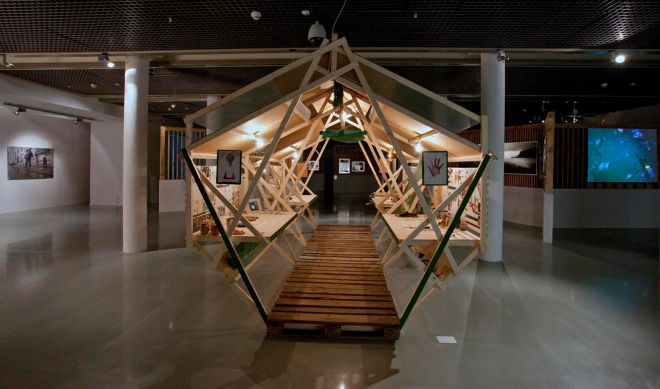 Specific poetics of relation have been made possible through collaboration with the architect Krzysztof Skoczylas, who has created an exhibition display that works as a setting in which connected artworks interact in unexpected associations. No illusion of neutrality has been produced. Rather, this exhibition display functions as a visible environment for perceiving both various links and dissimilarities between different artworks. A semitransparent architecture of “Untimely Stories” enabled the viewers to develop relations between different positions from decentered, unexpected, dispersed, and shifting standpoints. It was meant to trigger diverse trajectories and flows for thoughts and senses, while imposing neither a dominant track, nor an overarching conclusion.