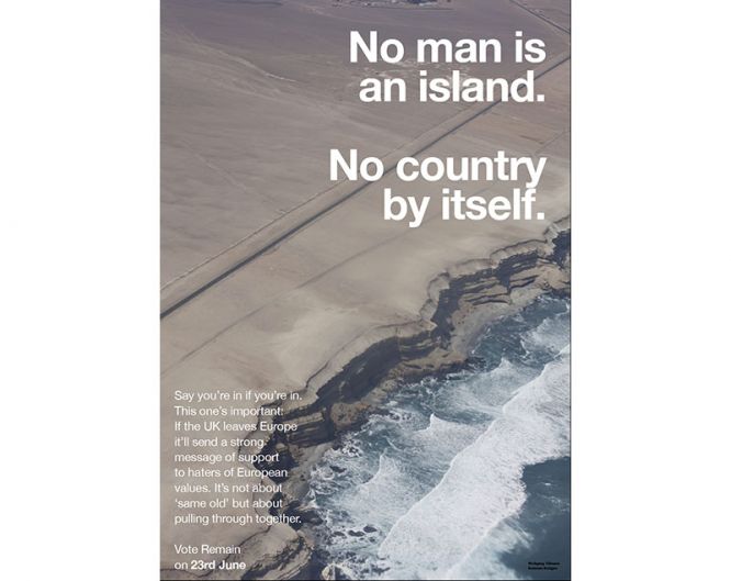 We use images to manage political imagination, issue warnings, call for help, make accusations, pursue propaganda, gather under a common banner, inflict visual violence, cause shame, restore appropriate proportions, call a spade a spade, etc. We thus influence reality by means of images – no doubt about it. Despite the undeniable power of images, we (still) fail (in most cases). Above: one of 25 pro-EU posters from the “EU Remain” cycle created by Wolfgang Tillmans in collaboration with Between Bridges prior to the British Brexit referendum in 2016.