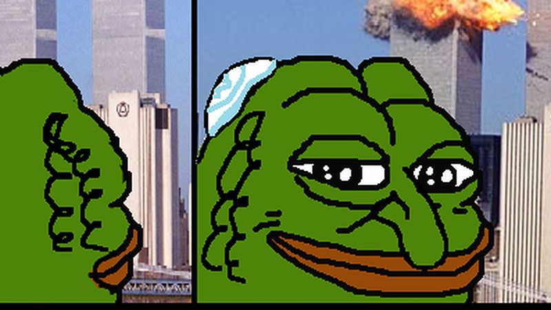 Images both unite and divide. The efficaciousness of images is currently put to the test by all sides of the political dispute: from the circle of graphic artists working under the banner of Democracy Illustrated, to Gazeta Polska weekly, which shocks with drastic collages. However, in recent years we have demonstrated far-reaching naivety by mistaking the use of images for ecumenism. We believed that images would build the community, integrate, offer the last resort after the disintegration of other languages. But the power of images also consists of creating consternation, confusing languages, causing chaos, refuting rational arguments, lying. Above: Pepe the Frog, a figure appropriated from Matt Furie’s comic strip series Boy’s Club and used by the alt-right movement in racist, anti-Semitic and negationist memes, banners, t-shirts, etc.