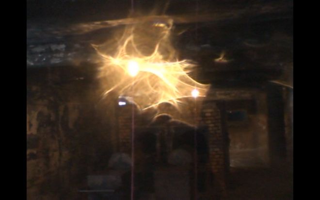 The anxiety and shakiness of T.turn stands in contrast to the stillness of Apple T. The vitality and fertility (fruit hanging from the branches) of the filmed organism inspire ambivalent feelings: has life won? Is the fact of hundreds of thousands of dead supposed to be represented by the vitality of vegetation? The next film engages with the same question of how to assess the biological status of life in an area “contaminated by death”. Uhuuuu (2006) records life that has found a home at a crematorium. A tawny owl heard by the crematorium grates at Majdanek is reminiscent of a ghostly echo from another world or the mocking noise of kids’ games played amidst the furnaces: you choose. The camera seems to be frozen in disbelief as to what is happening right in front of it. The projection loop sends us back to the bright square of the window, to the bird’s chirping, nine times.