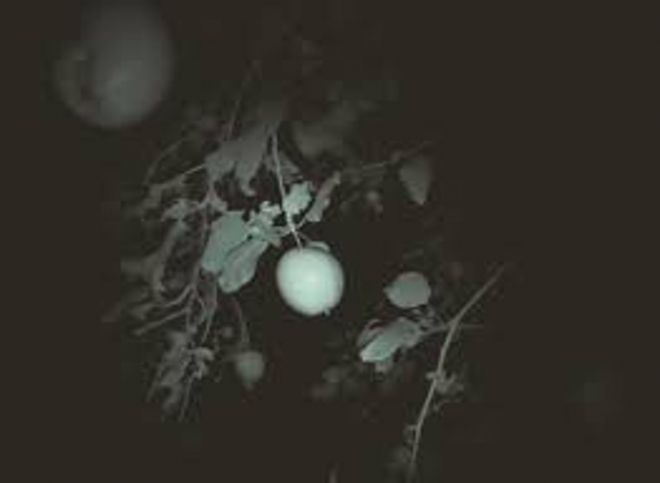 Apple T. (2009/2010) is a film in which the frame is filled by an apple tree from T. (the apple tree grows on railway tracks, and we become more and more skilled at reading the traces: there is already no doubt that camp T., Treblinka, is the one in question) and it keeps the viewer, for a moment, in the same place where T.turn is set. The temporal distance between the two works (five years) introduces a rhythm of returns in the cinema-installation – this is important, I believe, in the search for a general meaning for the projection. The one who looks, the one who films, is not a one-off visitor to post-camp sites7; s/he does not “collect” Holocaust landscapes or museums built on the premises of former death camps. His/her movement between these places means something else.