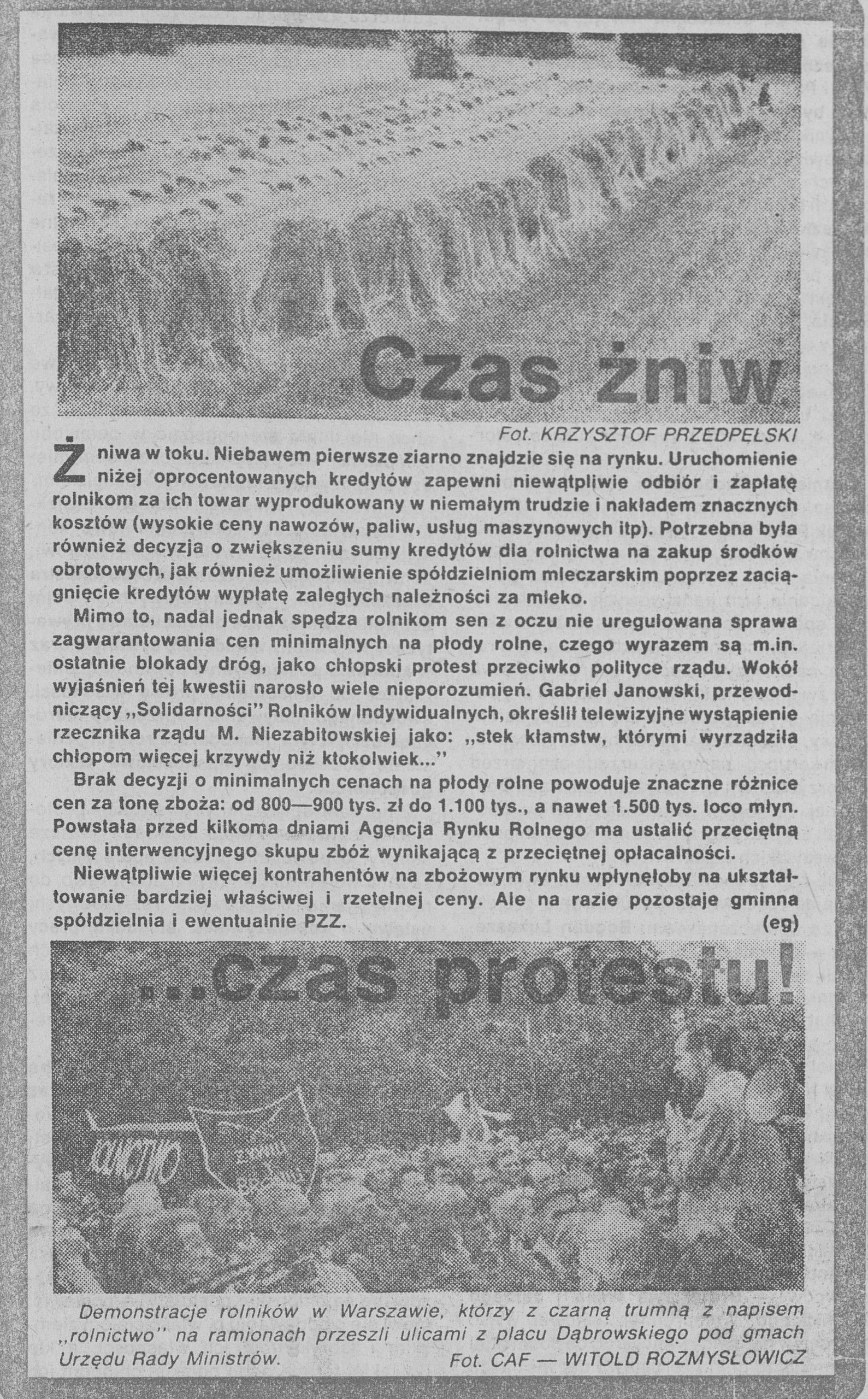 58 Andrzej Albigowski, “Desperacja rolników,” Chłopska Droga, September 15, 1991.