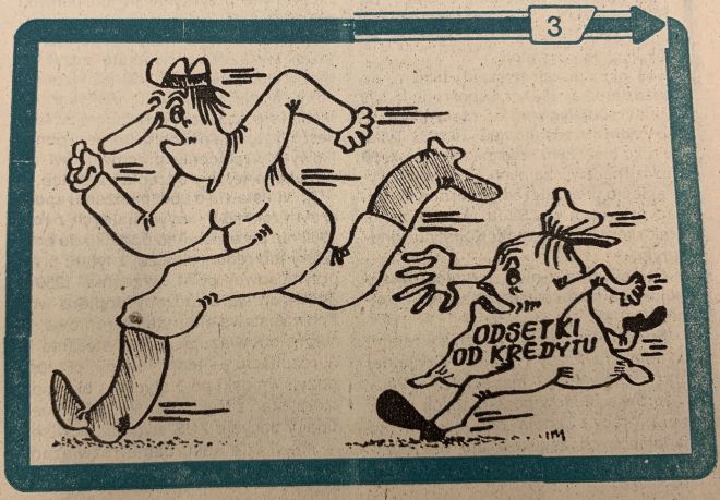 Interest chasing a farmer, drawing from Chłopska Droga