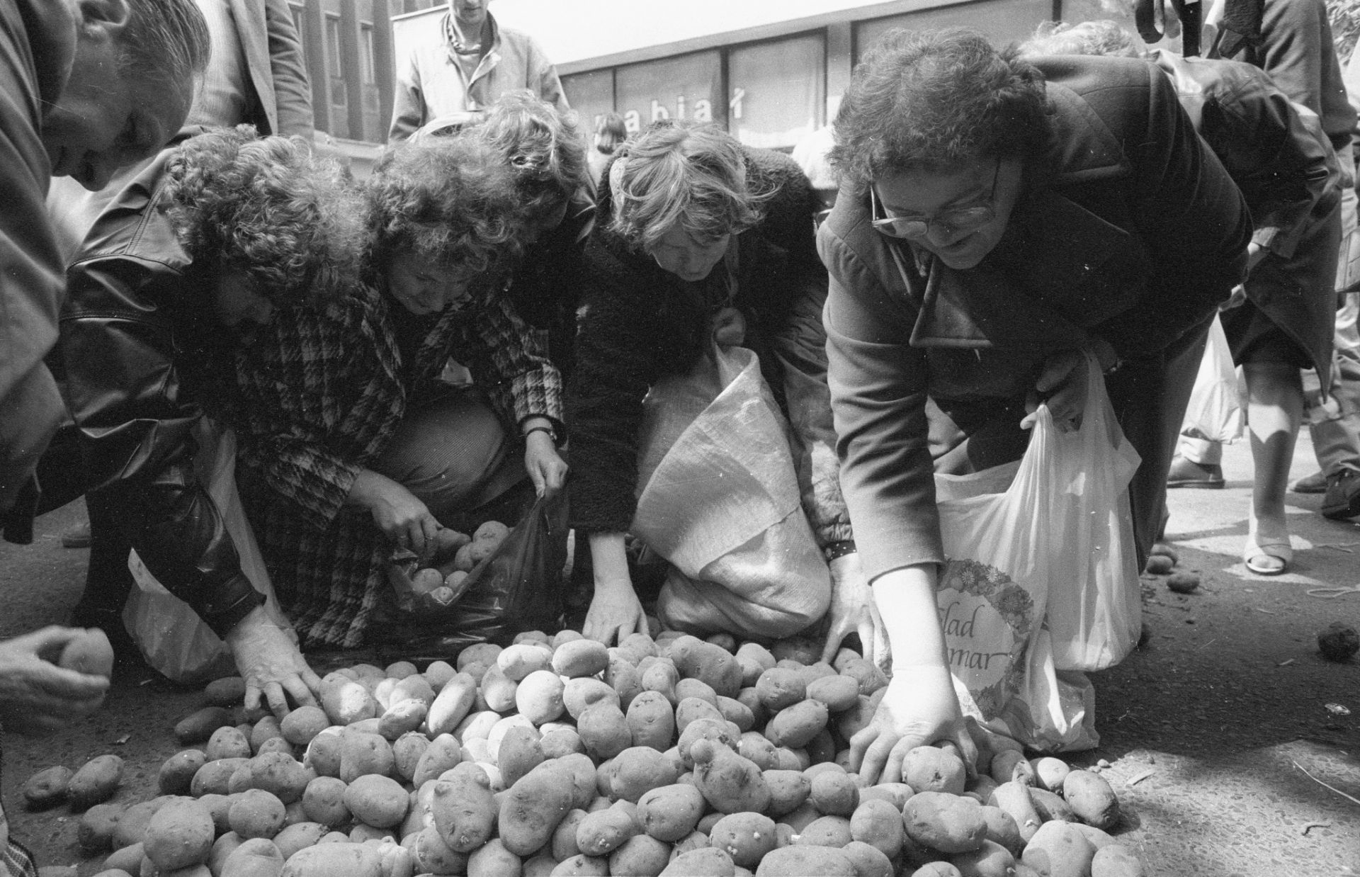 Locals collecting potatoes discarded by farmers, Warsaw, April 26, 1990, photo: Janusz Mazur, PAP