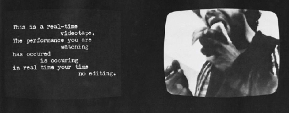 With this conception in mind, it is easier to understand Jack Burnham’s sarcasm: for him, the return to the question of the medium is actually deeply dull. It amounts to limiting reasoning to the confines of a so-called “art sphere,” even though the shift within this sphere causes the production in question to lose the ingredient necessary for its artistic effectiveness: spontaneity. At first glance, he explains, one might think that the post-formalist medium of television/video art preserves, more than others, a form of spontaneity in the process of reception, which is, in a certain respect, in line with that of human perception. “Without too much difficulty, it is easy to envision television as a kind of human eye attached to a purposeful brain. The electron beam scanning the phosphor on the inside of a video tube has all the ephemerality that we ordinarily associate with the ever shifting light falling on the mosaic of receptors in the human eye.” Yet, in reality, “Are not these images on videotape just as destructive to true spontaneity and creativity as the miles and miles of masterpieces seen in museums?”42