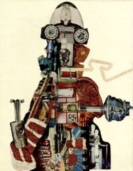 Fig. 5. John McHale, Machine Made, America, 1956. Original collage not located/lost, dimensions unknown, reproduced on the cover of the magazine Architectural Review, May 1957. © Architectural Review