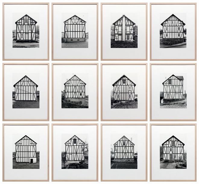 Bernd + Hilla Becher, Fachwerkhäuser (Mur Pruski), 1959-1973/1993. Dwanaście litografii w technice duotone (źródło)
