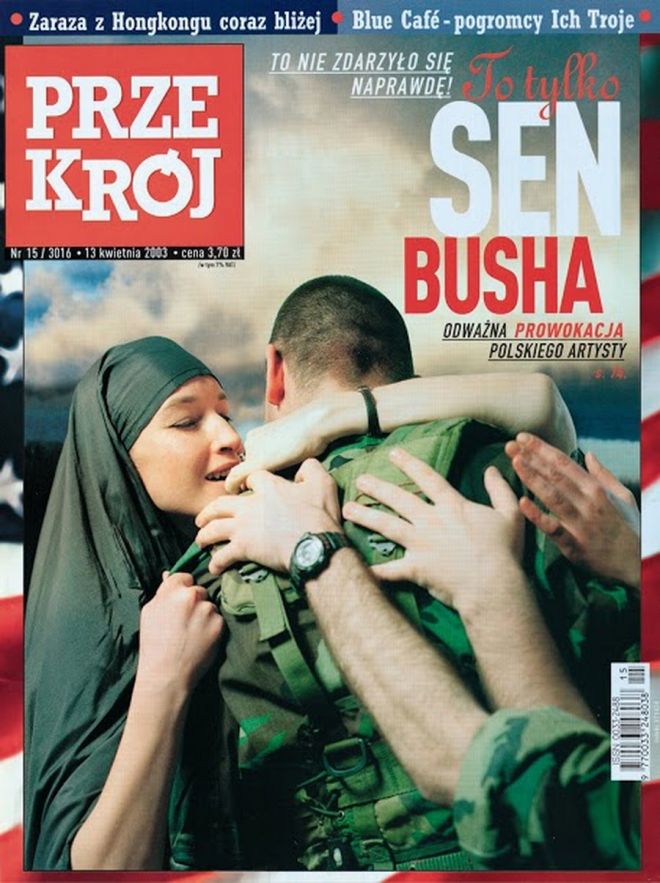 Zdjęcia Zbigniewa Libery opublikowane w „Przekroju” w kwietniu 2003 roku są pochodną słynnej serii artysty zatytułowanej Pozytywy, odwracającej nastrój ikonicznych fotografii związanych z konfliktami. Ich „negatywem” nie jest jednak żadna konkretna fotografia. Telewizja pokazywała w tym czasie bowiem raczej efektowne krajobrazy bombardowania, a wkrótce potem przede wszystkim fotografie z nielegalnego więzienia w Abu Ghraib. Praca fotograficzna Sen Busha odwołuje się raczej do klisz, potocznych, powszechnych, „realnych” i kinowych; obrazów triumfu dobra nad złem, wyzwolenia, ocalenia i wdzięczności. O ile Pozytywy zwracały uwagę na sam proces patrzenia i jego zmediatyzowanie (udział przed- i powidoków w patrzeniu), wyzyskując wzajemne relacje pomiędzy obrazami, o tyle mechanizm serii z „Przekroju” zdaje się prostszy – w ironiczną estetykę kiczu i marzenia sennego przypisanego kowbojowi, który tę wojnę rozpoczął, zostaje tu ubrana niezgodność wyobrażeń i rzeczywistości.