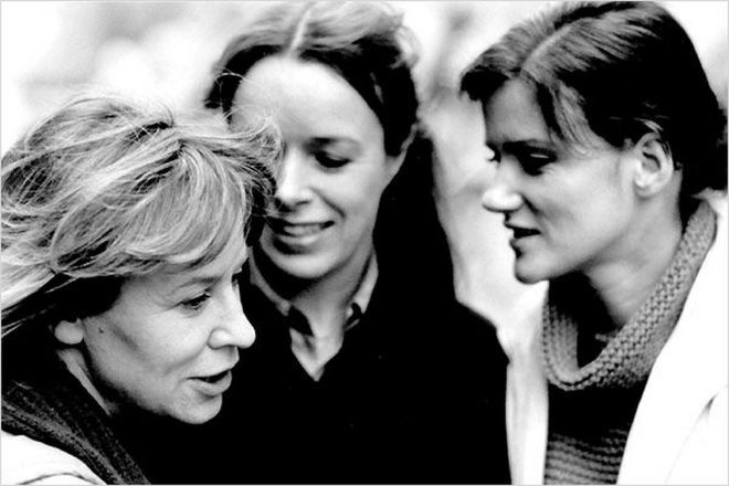 Margerethe von Trotta z odtwórczyniami głównych ról w filmie Czas ołowiu (1981)