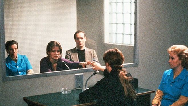 Wizyta w więzieniu. Kadr z filmu Margarethe von Trotty, Czas ołowiu (1981)