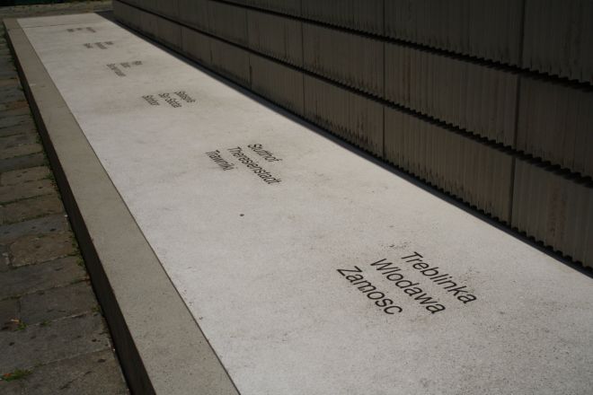 Dzięki tym wewnętrznie sprzecznym właściwościom udało się Whiteread uniknąć niebezpieczeństwa „topolatrii”20, nadmiernie bałwochwalczego stosunku do konkretnej, „straumatyzowanej” przestrzeni historycznej. Postawa ta, na poziomie formy, przejawia się w dosłowności, realistycznym odwzorowaniu otoczenia (zabudowań obozowych, motywu ruin, elementów architektury warszawskiego czy łódzkiego getta). W skrajnym przypadku to przestrzeń lub architektura same zaświadczają o sobie, są niemym pomnikiem zdarzenia historycznego, pełniącym funkcję memorialną, ale obywającym się bez artystycznej ingerencji człowieka. Whiteread wypracowała własny, daleki od topolatrii stosunek do przestrzeni Judenplatz i wszystkich innych przestrzeni obecnych w horyzoncie jego znaczeń – przywoływanych przez inskrypcje wyryte na podstawie pomnika. Jej koncepcja daleko wykracza poza strategię odwzorowywania, przepisywanie w innym kodzie wizualnym cech przestrzeni, którą reprezentuje. Opiera się raczej na zasadzie abstrakcyjnej ekwiwalencji przestrzeni, arbitralnego jej oznaczania, odległego od realiów miejsca.