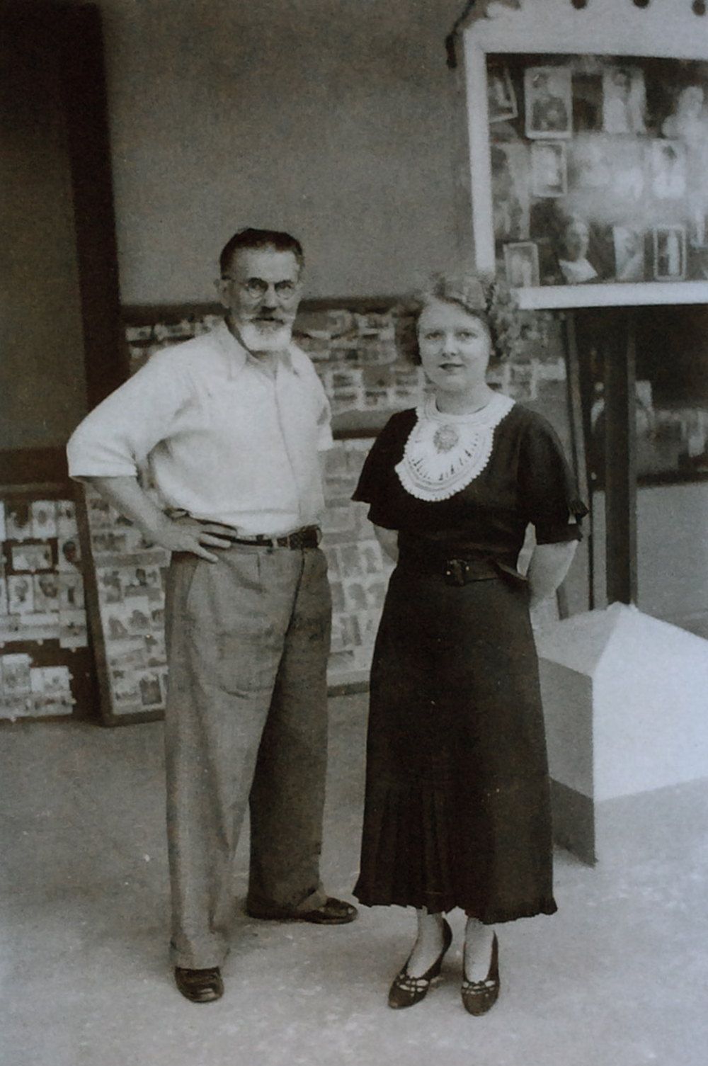 Fot. niezidentyfikowany, Kazimierz Zagórski stojący w towarzystwie niezidentyfikowanej kobiety przed swoim zakładem fotograficznym, 1937