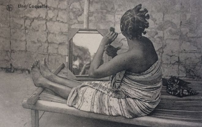 Szczególnie chętnie fotografowano przedstawicielki plemienia Mangbetu, uważane za szczyt afrykańskiej urody i elegancji. Nazywane „Paryżankami Afryki”, stały się stereotypowym wcieleniem zachodniej fascynacji mieszkanką erotyzmu i egzotyki47. Rozpowszechniony w latach 30. XX wieku, przede wszystkim przez fotografów, obraz długogłowej kobiety Mangbetu był rodzajem nieoficjalnego logo kolonializmu, został nawet umieszczony na belgijskich banknotach i znaczkach pocztowych, a nieco później stał się ikoną całej francuskojęzycznej Afryki, wcieleniem erotycznego i egzotycznego piękna, którego elegancja doskonale pasowała do założeń stylu art déco48. Afrykańskie kobiety najlepiej służyły zarówno artystom, jak i europejskiemu konsumentowi. Dodajmy, że relacje seksualne białych kolonizatorów z czarnymi kobietami były tematem tabu, choć wiadomo, że wielu europejskich inżynierów, spędzających samotnie wiele lat na kontynencie afrykańskim, wchodziło w nieformalne, choć mocno regulowane związki z miejscowymi kobietami49.