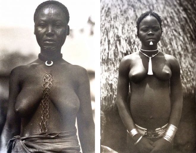 Po lewej: Kazimierz Zagórski, Francuska Afryka Równikowa, kobieta z plemienia Sarra (AQD I-116); po prawej: Kazimierz Zagórski, Kongo Belgijskie, Kobieta z terenów równika (Afrique qui disparait [dalej jako AQD] I-37 [numer oznacza miejsce w albumie Zagórskiego])