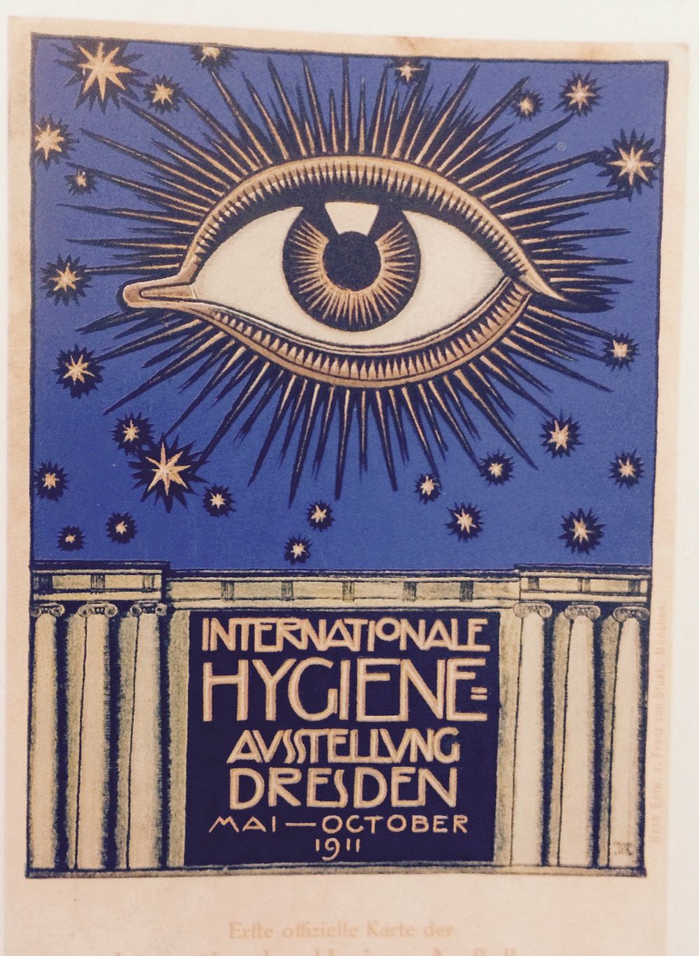 Wszechwidzące oko higieny i postępu, Drezno 1911. Chromolitografia, proj. Frank von Stuck. Reprodukcja za: Paweł Banaś, Orbis pictus. Świat dawnej karty pocztowej, Wydawnictwo Uniwersytetu Wrocławskiego, Wrocław 2005, s. 193.