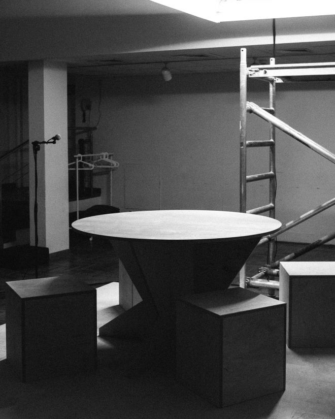 Sympozjum performatywne - stół / podium, fot. Krzysztof Pijarski