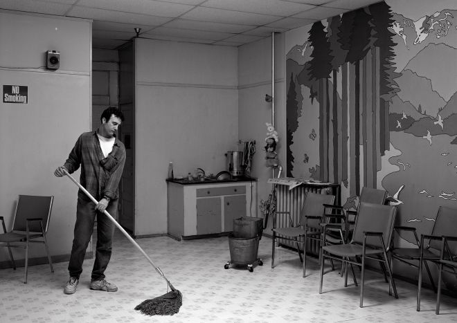 Jeff Wall, Volunteer, 1996, odbitka srebrowo-żelatynowa, 221.4 x 313.0 cm, dzięki uprzejmości artysty