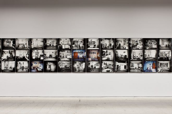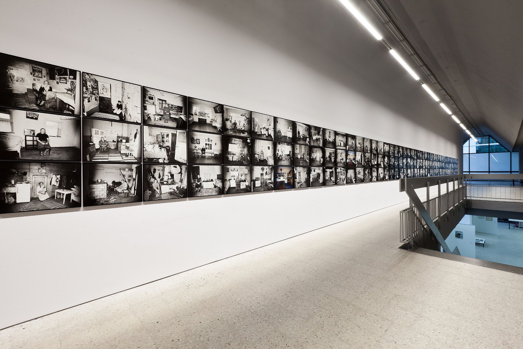 Prace są eksponowane w sposób, który podkreśla metodyczny sposób ich wytwarzania. Rozmieszczone są w zwartych seriach, w jednym ciągu albo w dwóch, trzech rzędach, w minimalistycznych czarnych ramach, ledwie oddzielających jedną odbitkę od drugiej. Idąc wzdłuż ściany, widz przegląda kolejne zdjęcia niczym „stykówki”, zauważa warianty, odmiany podobnych kompozycji, może poszukiwać podobnych motywów. Urok tego typu zbiorów polega między innymi na tym, że trzeba trenować swój sposób patrzenia, by nie dać się zwieść fasadzie podobieństwa i powtarzalności. Oglądając kolejne zdjęcia okien, telewizorów, ujęcia meblościanek i kolekcji proporczyków przyczepionych do ściennej maty warto przypomnieć sobie tę banalną zasadę, że nudy uniknąć można tylko poświęcając więcej czasu każdemu ujęciu.