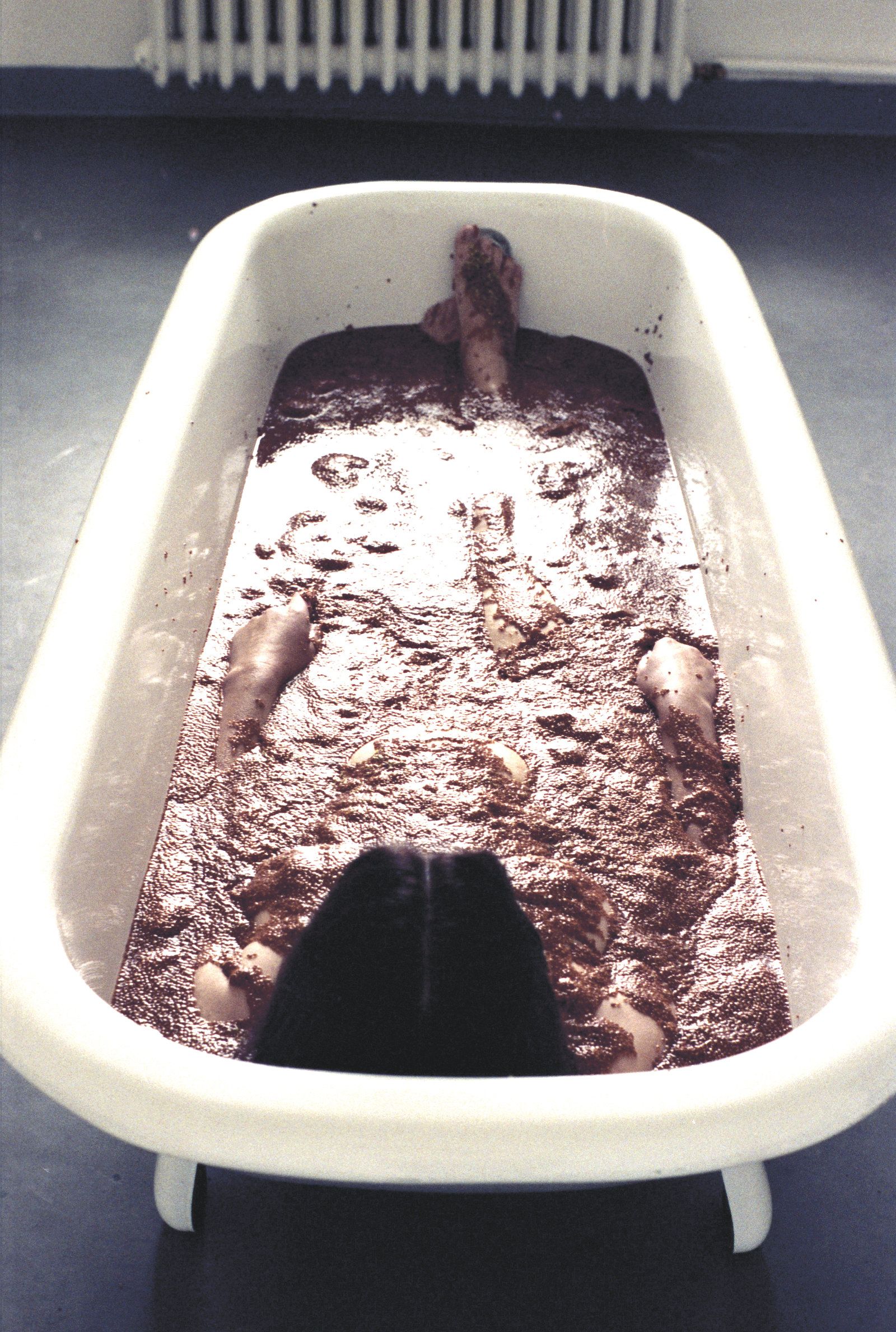 Juliana Snapper podczas swojego performance’u w wannie, 2014. Fot. Miles Rosemire