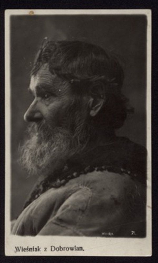 33 Maurycy Bäumer, Wieśniak z Dobrowlan, 1927. Pocztówka odb. na pap. srebrowo-żelatynowym. Biblioteka Narodowa, Warszawa.