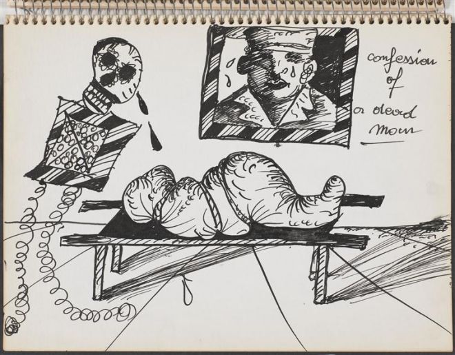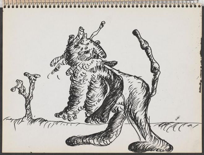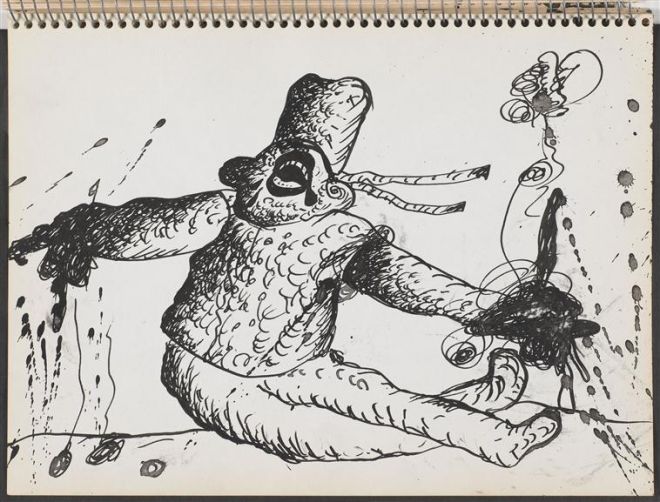 W odniesieniu do literatury i wypowiedzi analitycznej Kristeva szkicuje taki scenariusz: początkowo wstręt pojawia się w formie symptomu, „język wycofuje się i nadaje w ciele strukturę niemożliwemu do zasymilowania obcemu, potworowi, guzowi i rakowi”25 – np. pod postacią afonii. Gdy dochodzi do sublimacji, nadania nazwy temu, co przedpojęciowe, abiekt się nam wymyka. Akcent położony na semiotyczne w języku, czyli podkreślanie jego cielesności, jego „poetyzacja” pozwalają uczynić afekty słyszalnymi26. Ideału subtelnego nazywania dostarcza sztuka w formule katharsis. Cytując powyżej komentarze Maryana, zwracam uwagę na to, że szkicowniki są formą, która łączy ślad „mowy ciała” z wrażliwym na jego poruszenia, poetyckim słowem – z organicznym, nieregularnym, rozedrganym pismem. Próby podejmowane przez artystę można skojarzyć z formułą katartycznego „wyrzygu”, który najpierw wyzwala wstręt, a następnie podejmuje próbę jego „harmonizacji”.