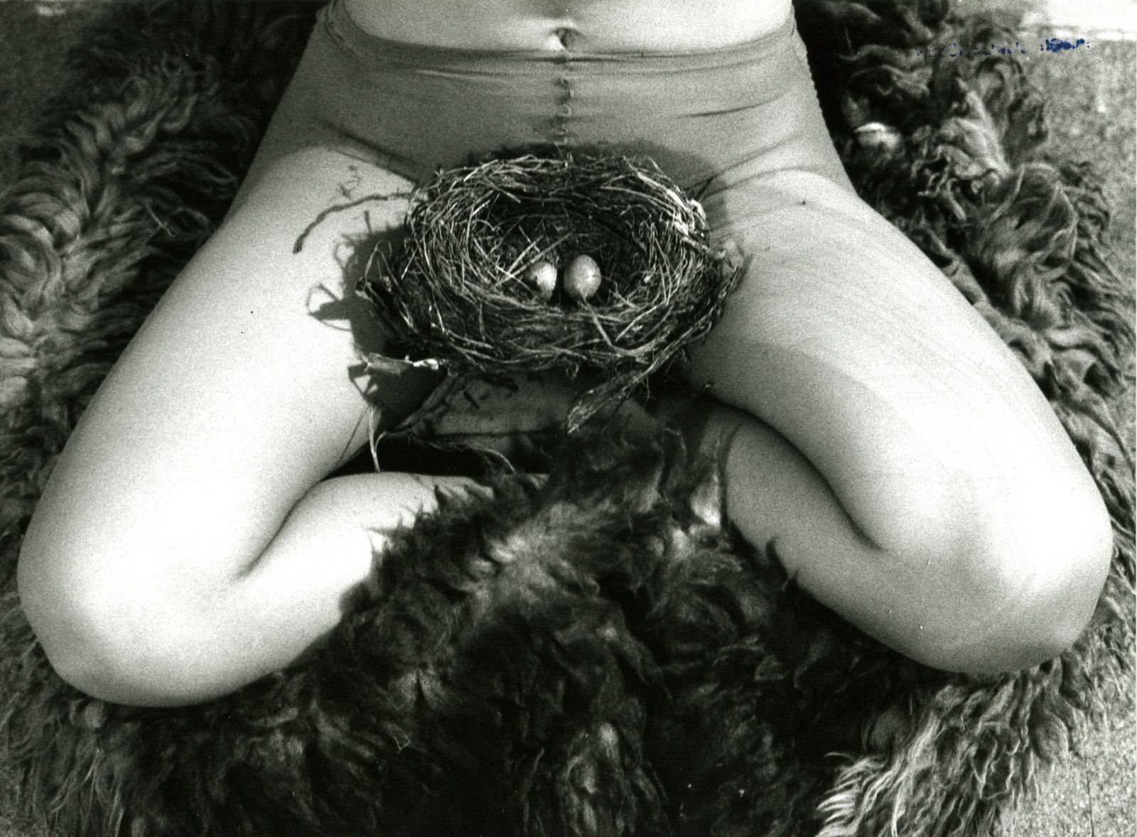 Birgit Jürgenssen, Gniazdo [Nest], 1979. Fotografia dzięki uprzejmości Estate Birgit Jürgenssen, Wiedeń. Kolekcja Muzeum Sztuki w Łodzi