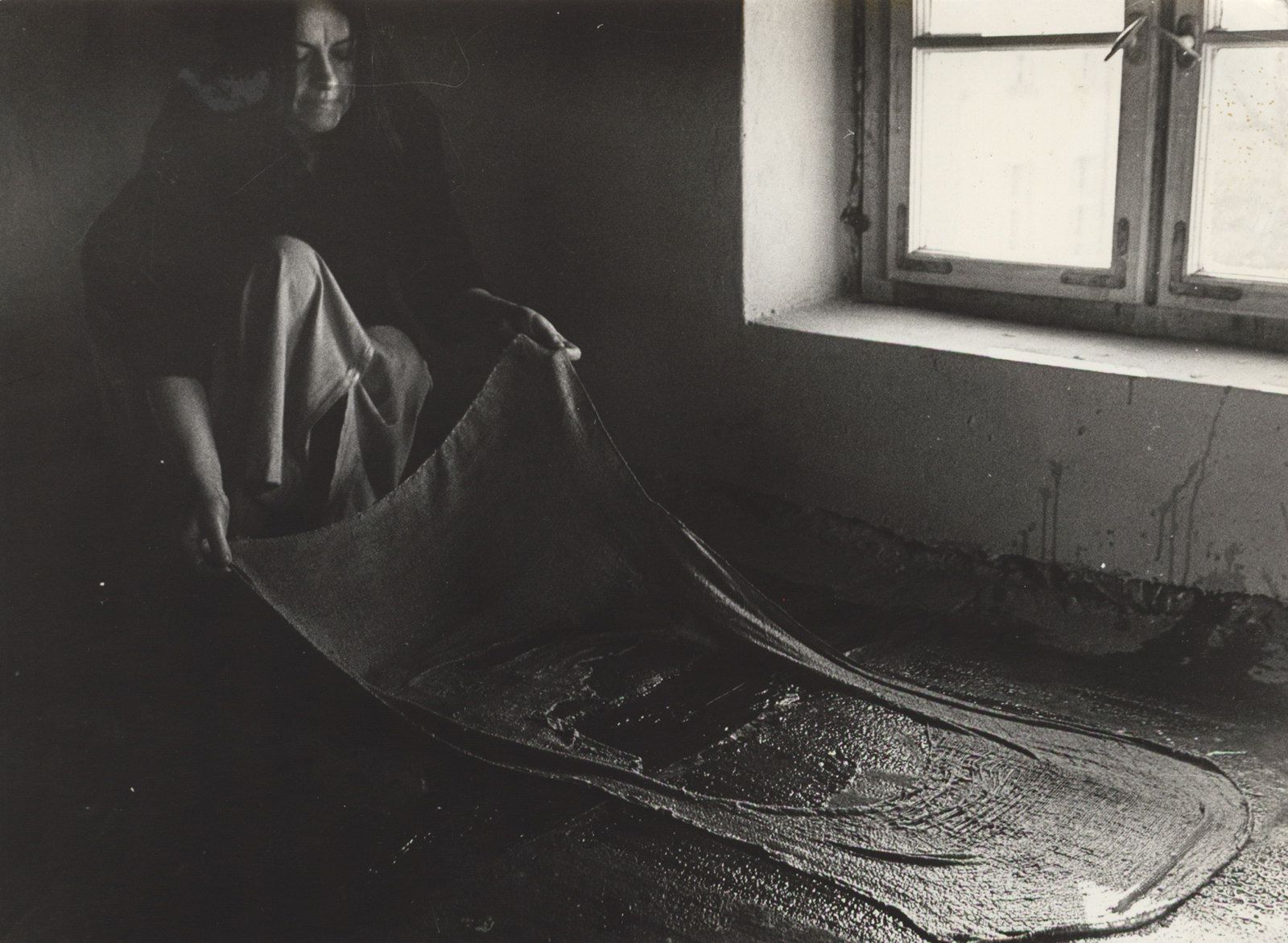 Teresa Murak, Ścierki wizytek, 1990. Dokumentacja performansu, Hotel Sztuki, 1990. Dzięki uprzejmości artystki