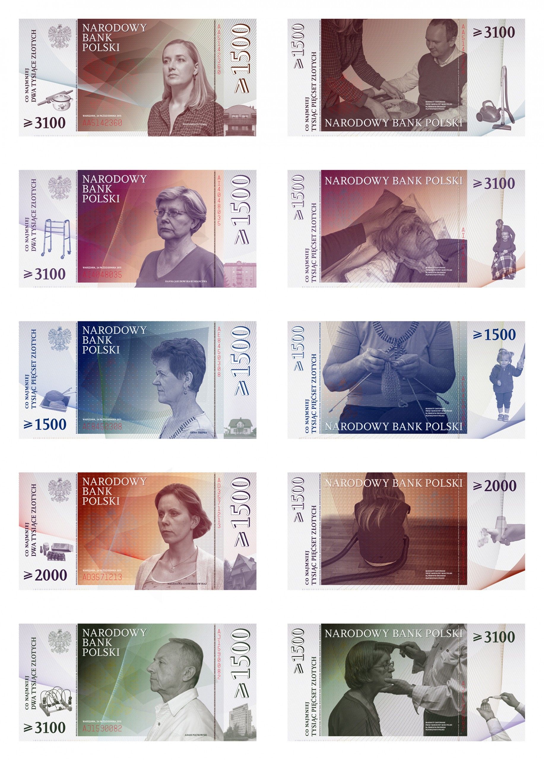 Daniel Rumiancew, Prototypy banknotów, 2015. Wydruki atramentowe. Dzięki uprzejmości artysty