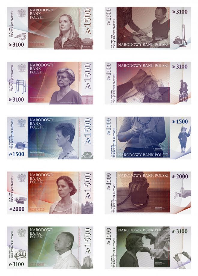 Niewidocznym, wykluczonym ekonomicznie i społecznie bohaterkom życia codziennego Daniel Rumiancew poświęcił Prototypy banknotów. Przedstawiają one osoby (cztery kobiety i jednego mężczyznę), które zrezygnowały z pracy najemnej lub nieodpłatnie poświęcają swój czas na emeryturze, żeby opiekować się zależnymi bliskimi niezdolnymi do samodzielnego funkcjonowania z powodu choroby, niepełnosprawności lub wieku. Prototypy, podobnie jak Feministyczny manifest, zakładają, że troska i opieka to fundamenty dobrego społeczeństwa i dlatego powinny być odpowiednio wynagradzane, a co za tym idzie społecznie szanowane, na co wskazują opisy i wyceny prac umieszczone na banknotach. Tytuł pracy Rumiancewa wyraża nadzieję, że to rozwiązania realne, czekające tylko na wprowadzenie wbrew obecnej deprecjacji tej pracy w Polsce i tradycji sadystycznego wymuszania, głównie na kobietach, samotnego, katolickiego w duchu poświęcenia dla rodziny. Nowy wydźwięk nadają pracy aktualne wydarzenia polityczne, czyli pogarda polskiego rządu wobec strajku opiekunek i opiekunów osób niepełnosprawnych walczących o wynagrodzenia i świadczenia na znośniejsze życie poza domowym odosobnieniem (główne postulaty to zwiększenie renty socjalnej i przyznanie dodatku rehabilitacyjnego dla osób ze znacznym stopniem niepełnosprawności)27.
