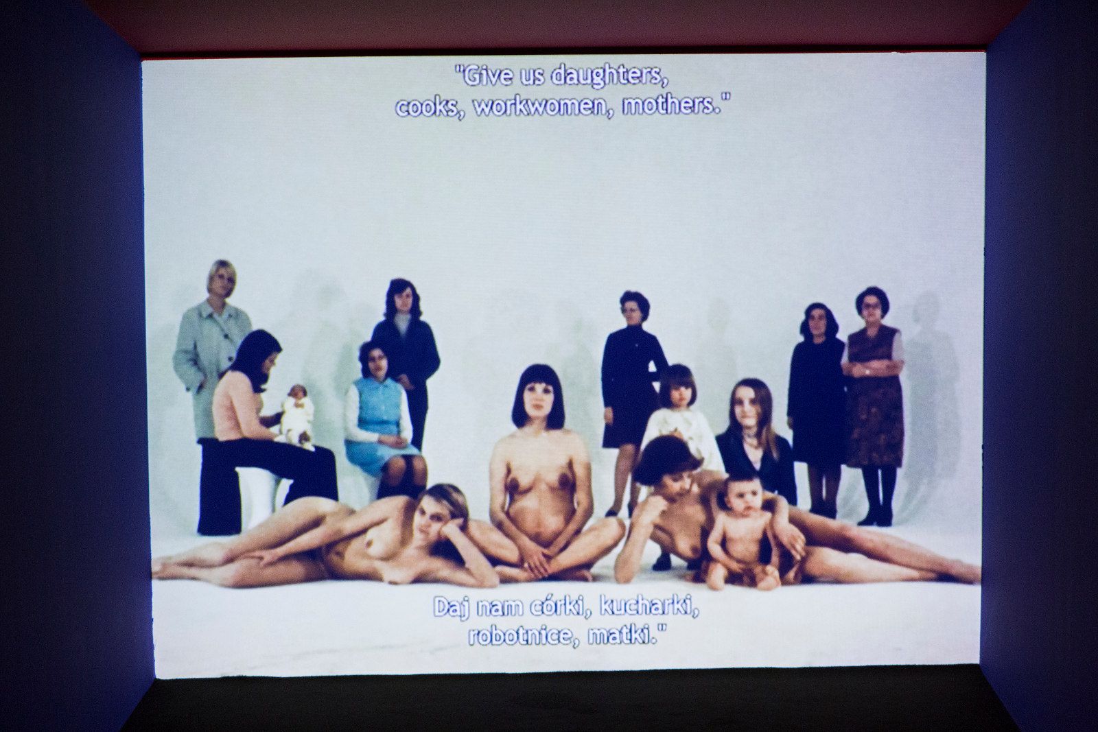 Doświadczenia opresji kobiet w procesach produkcji i nieekonomicznej reprodukcji przywołane zostały na wystawie za pośrednictwem filmów dokumentalnych powstałych w ustroju socjalistycznym, w Polskiej Rzeczpospolitej Ludowej, poza kontekstem politycznych i estetycznych artykulacji feminizmu. Filmy Krystyny Gryczełowskiej i Ireny Kamieńskiej zrealizowane zostały w orbicie nieformalnej polskiej szkoły dokumentu Kazimierza Karabasza, poszukującej nowych sposobów opisu rzeczywistości po okresie dyktatu jednoznacznej państwowej propagandy. Podążając za łódzką robotnicą zarówno w fabryce, jak i podczas zakupów, odbierania dziecka z przedszkola czy wreszcie w mieszkaniu, Krystyna Gryczełowska pokazuje w filmie 24 godziny z życia Jadwigi L. (1967) pracę, jaką kobieta świadczy samotnie dla kilkuosobowej rodziny – od zaopatrzenia, po sprzątanie, organizowanie przestrzeni, gotowanie i opiekę. W życiu bohaterki, skumulowanym w filmie do jednej doby, nie ma w ogóle osobistego, własnego czasu wolnego. Tym bardziej staje się jasne, że nie ma w nim, podobnie jak w życiu protagonistek filmu Berwick Street Film Collective, miejsca i energii na jakąkolwiek niezarobkową i pozarodzinną aktywność społeczną. Z kolei dokument Ireny Kamieńskiej Robotnice (1980) koncentruje się na skargach pracownic krośnieńskich Zakładów Przemysłu Lniarskiego na tragiczne warunki pracy: zawyżone normy wykonawcze narzucone przez centralny plan, zagrożenie zdrowia, brak odpowiedniej odzieży czy dogodnego transportu ze wsi do fabryki. Wśród skarg przebija złość na całkowicie zmaskulinizowaną władzę, majstrów, kierowników, dyrekcję i socjalistyczne państwo, które miało znieść wyzysk kobiet.