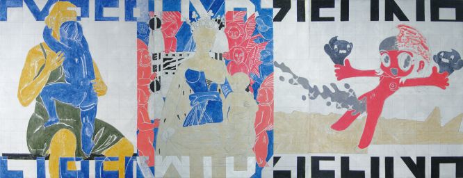 MS: Generalnie ze wszystkim się zgadzam. Chciałbym jeszcze wspomnieć o ważnym dla mnie aspekcie, na który stajemy się ostatnio uczuleni: o demokratyzowaniu pewnych obszarów. Chodzi o to, że można do pewnych rzeczy po prostu przystąpić, można partycypować, dyskutować, można je mieć, można mieć te kolekcje. Można wokół tego rozwijać różne koncepty, nie brnąc w etniczną, fałszywą, łajdacką, tożsamościową narrację, że moje, własne na górze, ale właśnie zaprzeczając linii feudalnej, idącej od góry przez historię, estetykę i naukę. To znaczy, że jesteś w stanie wyjść i powiedzieć: ja to biorę do rozmowy, ja to robię. Mogę odwrócić prosty koncept, fałszywie używany, powiedzmy Piotra Uklańskiego: papieża obnoszonego niczym ikonę. Muzeum w Pałacu Prezydenckim inicjowano tym obrazem, podobnie było też z muzeum na placu Defilad. Tymczasem ja dysponuję władzą, żeby to wziąć i powiedzieć: Jak to z żołnierza papieża? Właśnie odwrotnie: z papieża żołnierza! Papież jest istotnym i jakże wspaniałym żołnierzem. To jest klucz – można wejść w pewną część Warszawy i łatwiej jest tam wejść, posługując się papieżem. A ja mogę powiedzieć: żołnierzem – i oto jestem w obszarze władzy.
