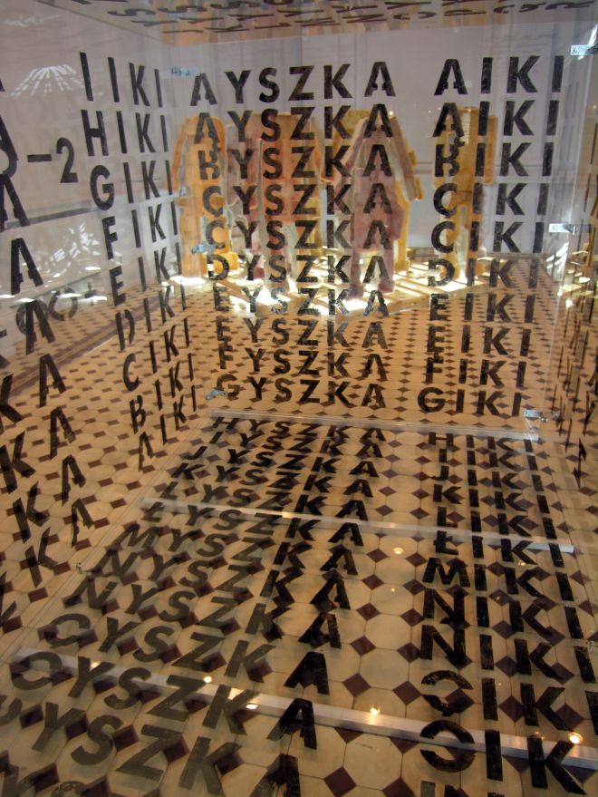 MS: Posłużę się przykładem. Weźmy Monikę Sosnowską, która formatuje prace. Można mi zarzucić, że to złośliwość, ale tak nie jest. Gdy mówię: „formatuje”, mam na myśli to, że do formatu galerii niejako prasuje modernizm, czyni go czytelnym w formacie galerii, a być może nieczytelnym w innym. Chciałem zrobić pracę, która będzie czytelna w nieco innym kontekście: kwintesencji modernizmu, tym bowiem jest Suszarka, powiększona do formatu architektury i zgnieciona. To nie oznacza unicestwienia, ale antagonizuje. Ciągle chcę wrócić do możliwości rozmowy. I myślę, że jakkolwiek oczywiście to się gmatwa, bo mamy do czynienia ze skomplikowaną materią, to jednak nie jest to zagmatwane. Gmatwa się, bo jedno wpływa na drugie. Przede wszystkim obraz konfrontuje się z pracą przestrzenną, jak w przypadku „Władysława Strzemińskiego” w cudzysłowie, gdzie mamy Andrzeja Wróblewskiego. Strzemiński był utopią, utopią nierealizowalną, nie wpadł na to, jak realizować swoją utopię rytmu, komunikatu, organizacji społecznej. A ja ją po latach pokazuję: wystarczy, że dodamy tu trzeci wymiar, zamienimy litery w architekturę, i już możemy się między nimi poruszać, możemy umieszczać komunikaty i żyć pośród nich. Realizuję utopię, a zarazem pokazuję rzecz, która nigdy nie była utopijna i od razu była zrealizowana – właśnie Wróblewskiego.
