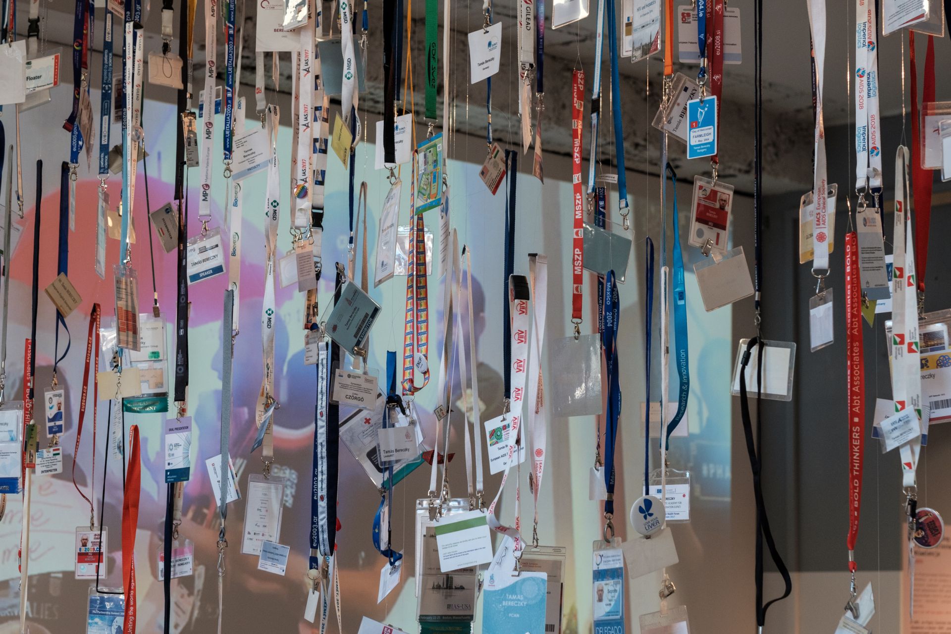 Interesującą propozycję pracy badawczej w ramach HIVStorii stanowi natomiast instalacja Identyfikatory imienne z różnych konferencji dotyczących HIV, złożona z tytułowych przedmiotów zawieszonych na taśmach nieco powyżej wysokości wzroku człowieka. Porusza ona problem sprzeczności wpisanych w aktywizm organizacji działających na rzecz osób żyjących z HIV i ruchów pacjenckich w kontekście międzynarodowych konferencji organizowanych w krajach zachodnich demokracji. Jak dowiedziałam się podczas oprowadzania po wystawie oraz z wywiadu z Tamásem Bereczkim, byłym członkiem European AIDS Treatment Group, w pewnym momencie konferencje, wcześniej będące obiecującą przestrzenią widzialności problemów osób żyjących z HIV i sprzyjających im organizacji, podporządkowały sobie aktywizm. Stało się tak, ponieważ prowadzony w trakcie ich trwania protest został sformalizowany, zinstytucjonalizowany i spacyfikowany, stając się w efekcie działaniem kompromisowym, paradoksalnie prowadzonym przy finansowym wsparciu firm farmaceutycznych, których polityki stanowią jeden z głównych przedmiotów krytyki aktywistów. Żeby się tego dowiedzieć, najpierw trzeba było wspiąć się nieco na palce – dopiero wówczas można było szeroko otworzyć oczy ze zdumienia. Jest to zatem przykład pracy, która nie jest ilustracją, lecz mobilizuje i materializuje istotną dla aktywizmu detektywistyczną dociekliwość.