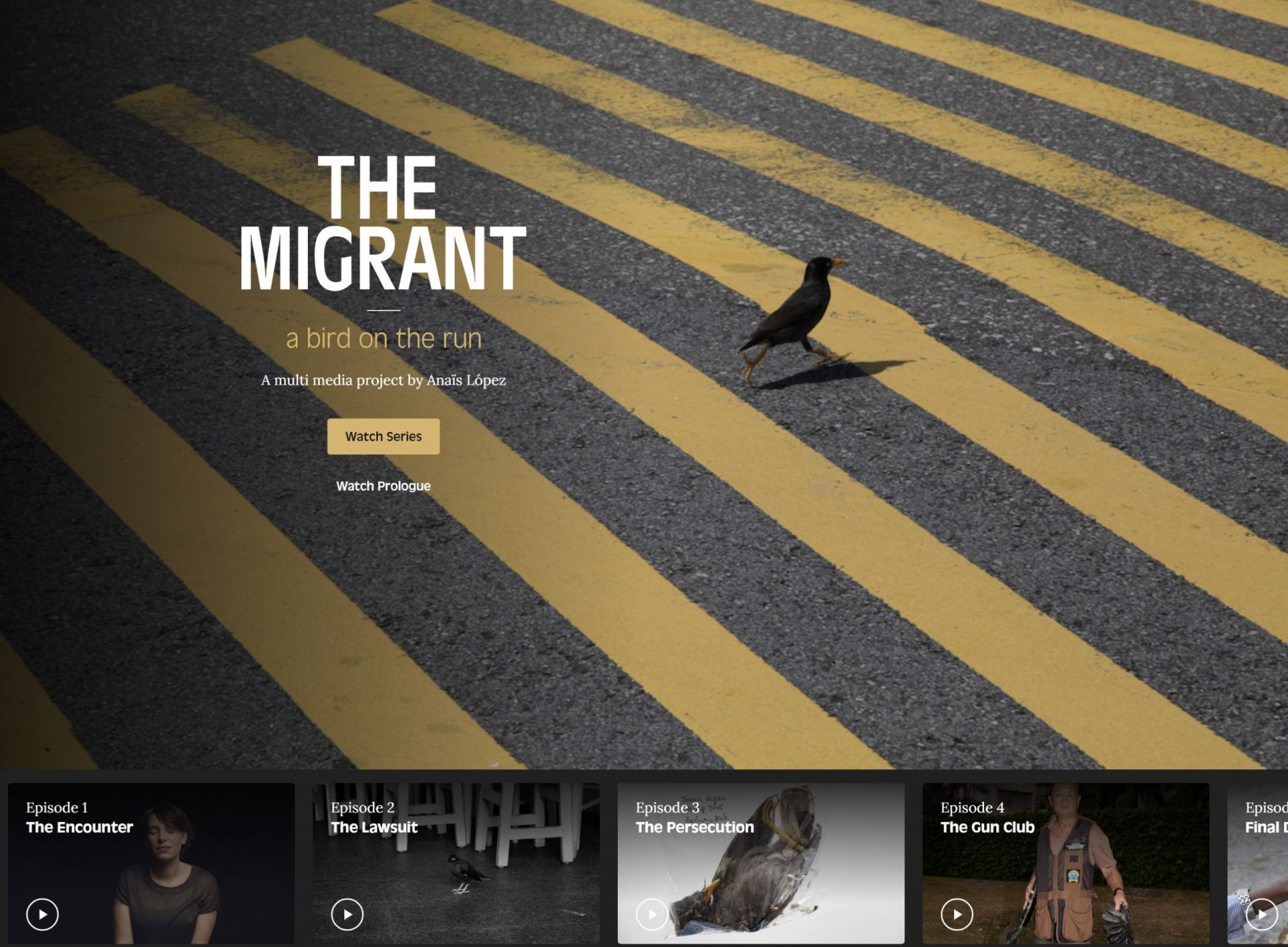 Strona główna projektu The Migrant Anaïs López. Dobrym wprowadzeniem do projektu jest jego teaser. Więcej informacji na poświęconej projekcie części strony domowej artystki.