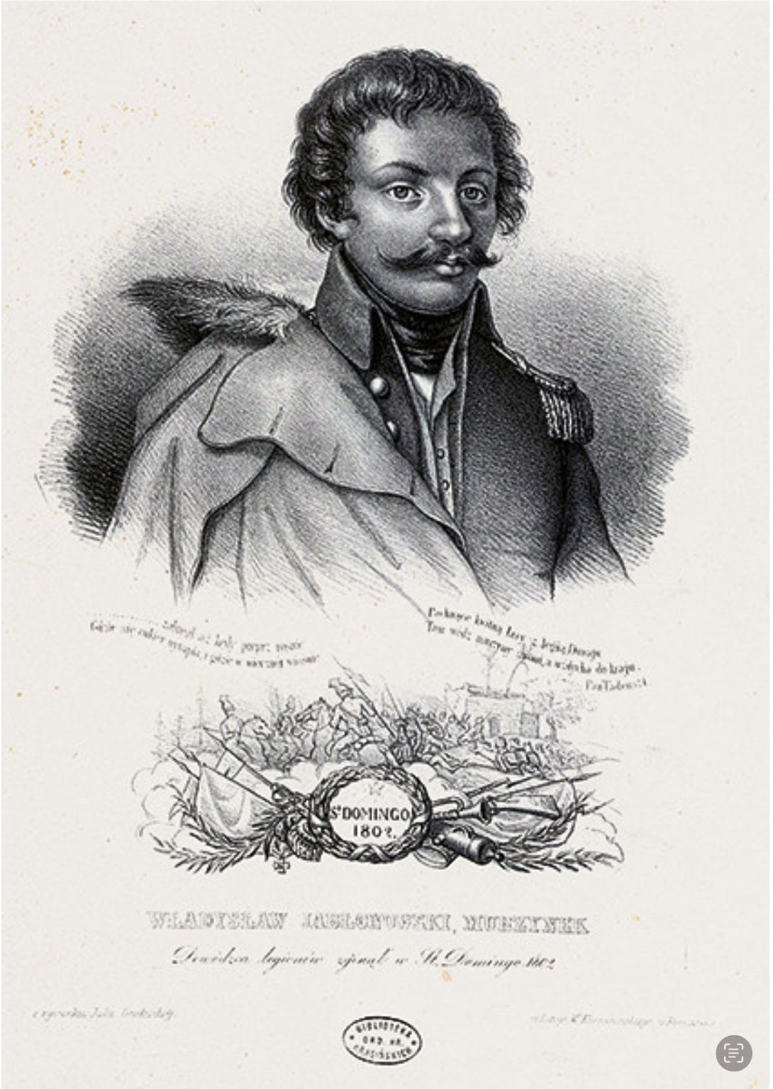 Generał Władysław Jabłonowski (1769–1802), dowódca brygady Legionów Polskich, nazywany „Murzynkiem”. Litografia autorstwa Julii Grodzickiej. Zbiory Biblioteki Narodowej