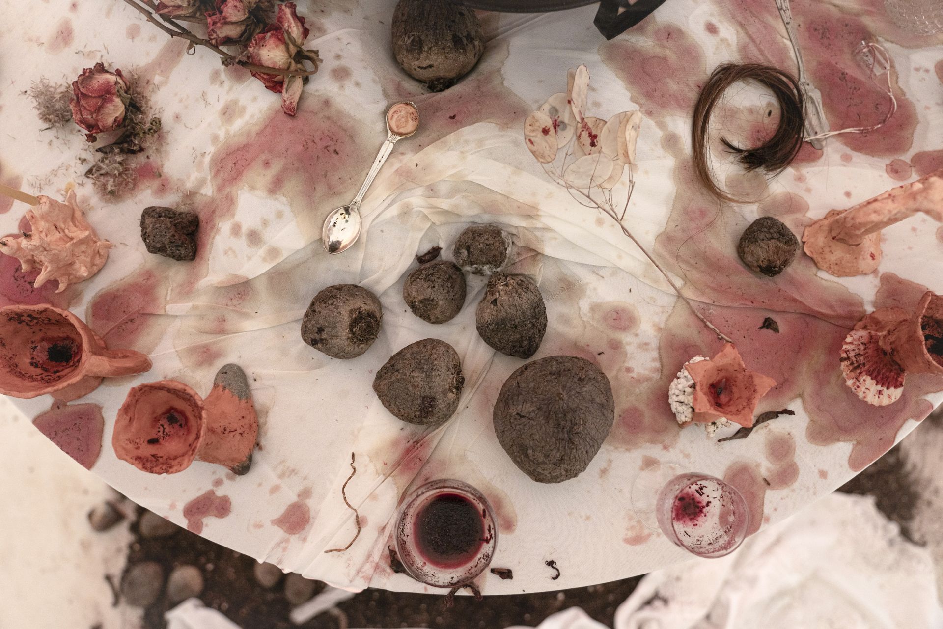 Po co jednak ważyć te wszystkie mikstury? Po co zbierać zioła, kwiaty, wertować stare zielniki w poszukiwaniu dawnych recept? Po co siadać przy powykręcanych stolikach przykrytych obrusem poplamionym sokiem z buraka (il. 10)? Jakich narzędzi użyć, by wlać w martwe przedmioty dusze dawnych czarownic i pozwolić im opowiedzieć swoją historię51? Po co dziś wskrzeszać i przywoływać czarownice?