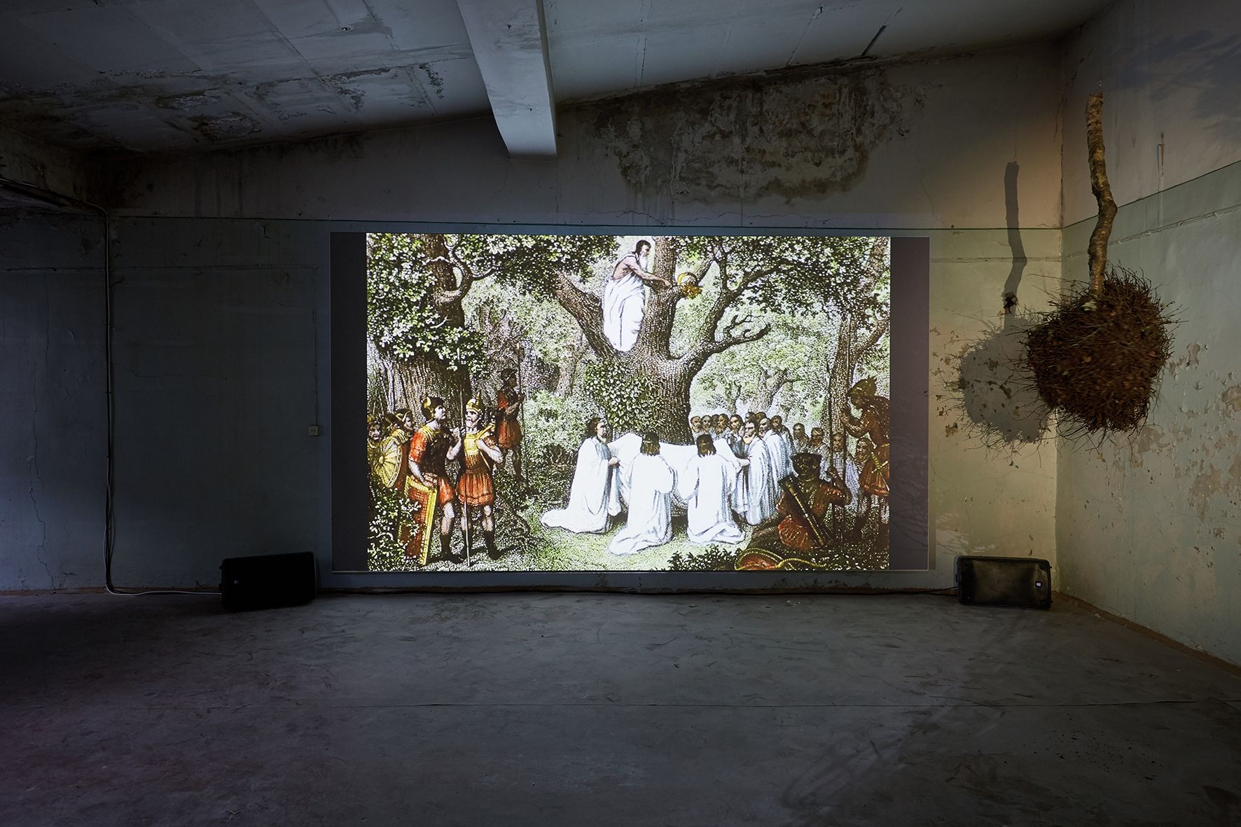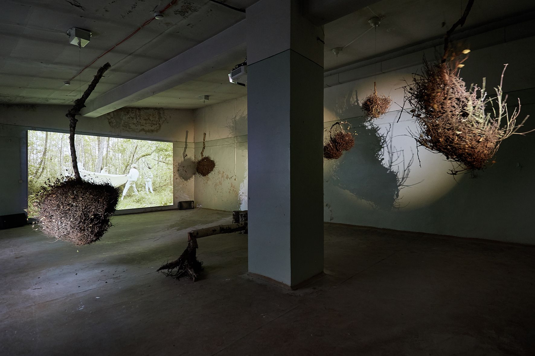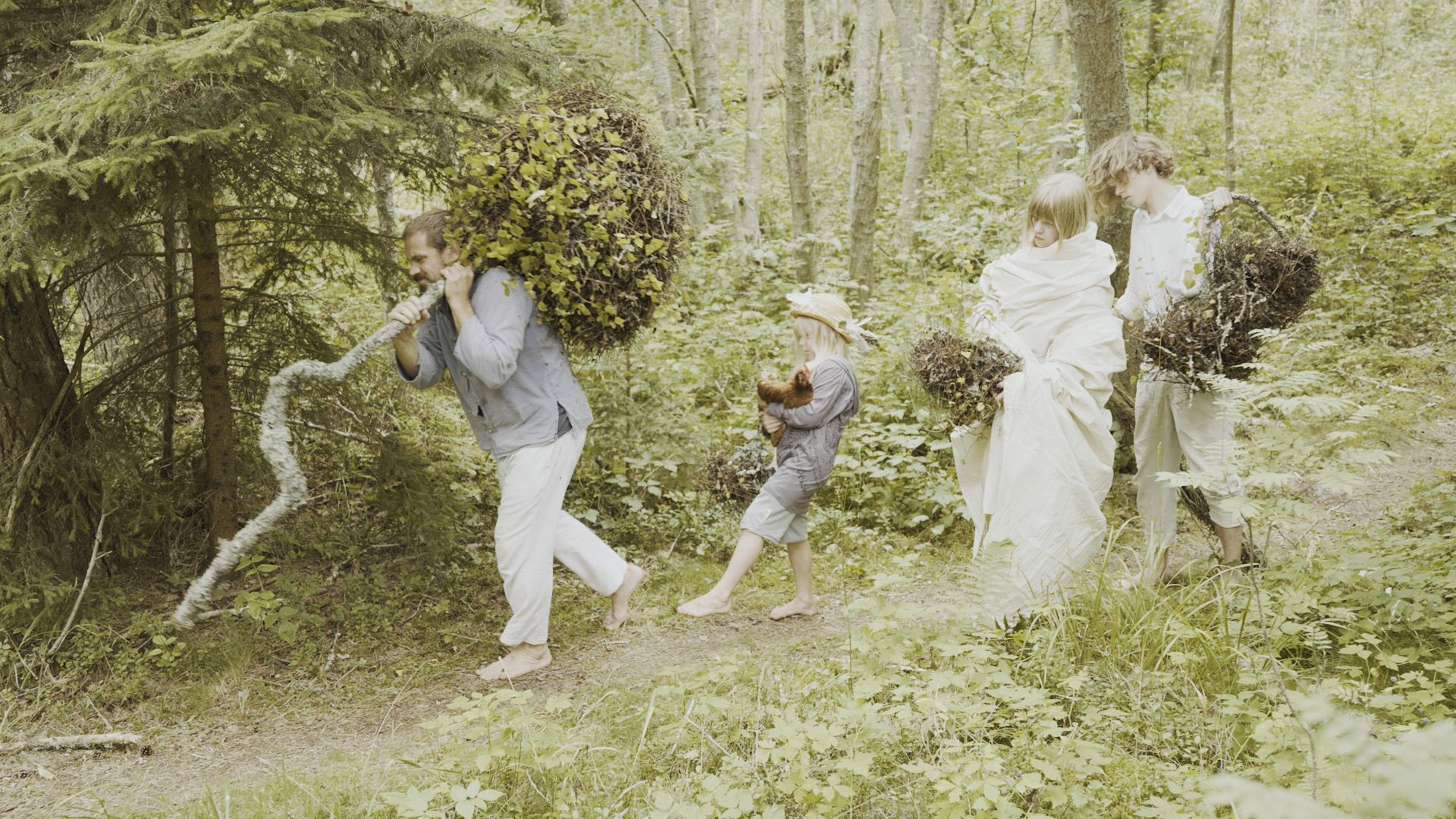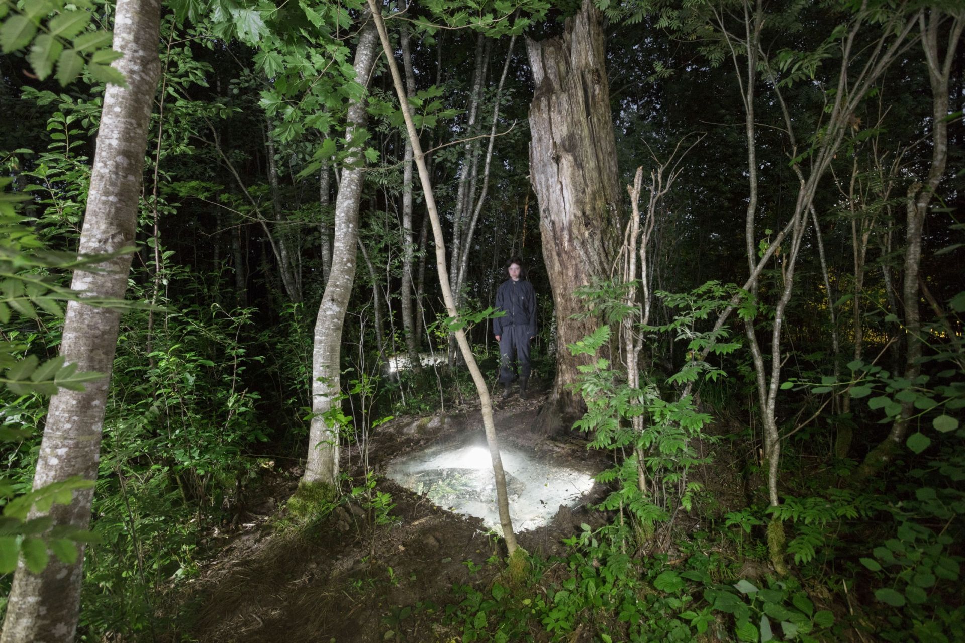 W tej pracy Katrīna Neiburga zanurza się w mitach i opowieściach lasu — jego duchach i tajemnicach. Tradycyjna chata i otaczający ją las stały się scenerią dla jej artystycznej eksploracji okolic jeziora Grundlsee; przemierza je tak, jak przemierza się żywe archiwum: uważnie, bez pośpiechu, gotowa na spotkanie. Wśród napotkanych postaci była Burgl Schramml, rdzenna mieszkanka Aussee, którą artystka łagodnie wtajemniczyła w sekrety lasu. Muzyka, skomponowana przez Annę Fišere we współpracy z łotewskimi muzykami, splata różne instrumenty w partyturę tak wielowarstwową, jak sam krajobraz. Powstała praca, która utrzymuje w równowadze antropologiczną ciekawość i swobodę wyobraźni — zakorzeniona w mitach, opowieściach i wspomnieniach zebranych przez artystkę w tym regionie, a zarazem sięgająca ku czemuś znacznie bardziej dzikiemu.