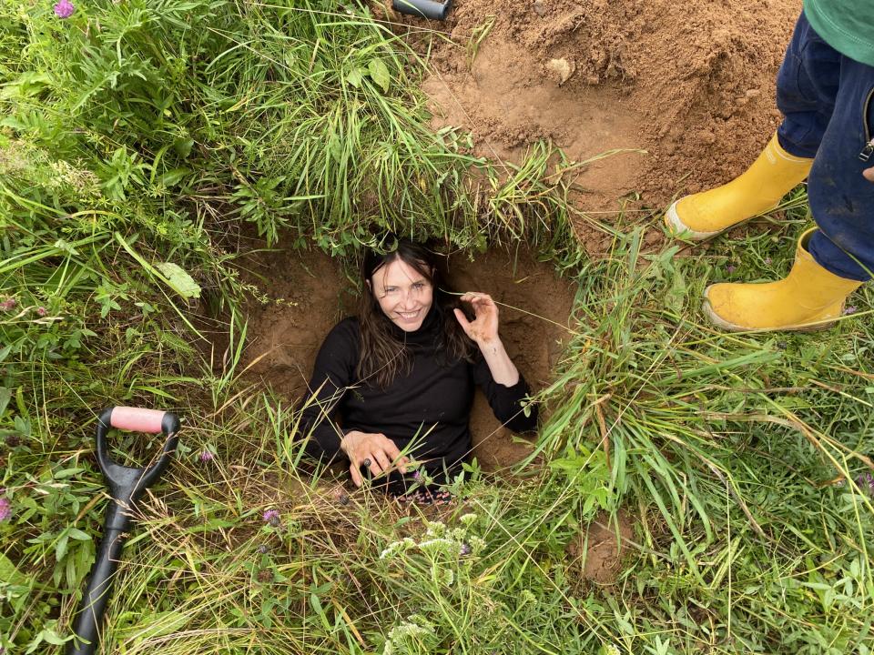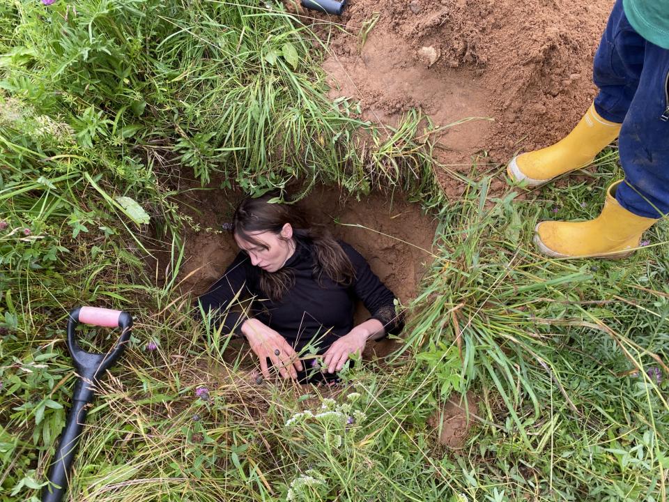 Leżeć w dole — ten prosty gest staje się rytuałem przejścia. Artystka wynurza się z Ziemi — najpierw głowa, potem reszta ciała — jak noworodek. Stąd właśnie bierze początek historia pewnej osobliwej mądrości: jako możliwość nieustannego powrotu.