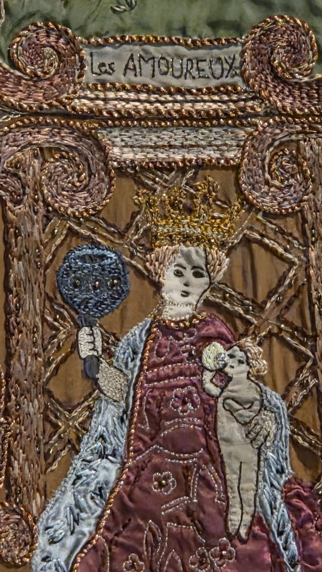 Il.2 Maria Grazia Chiuri dla Diora, Haute Couture Collection Autumn/Winter 2017 inspirowana tarotem Visconti di Modrone, podc LOUVRE COUTURE. Art and Fazasshion: Statement Pieces, Louvre, Paryż, 24 styczeń - 24 sierpień, 2025.