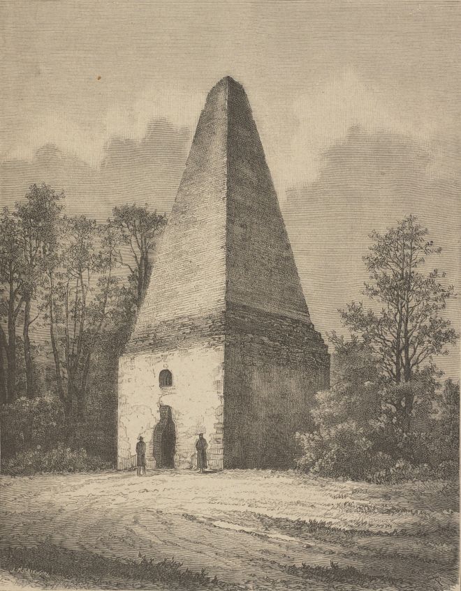 Grobisko ariańskie w Krynicy na rycinie Jana Krajewskiego pt. Grobowiec w Krupem, 1883 © Polona – Biblioteka Narodowa/domena publiczna